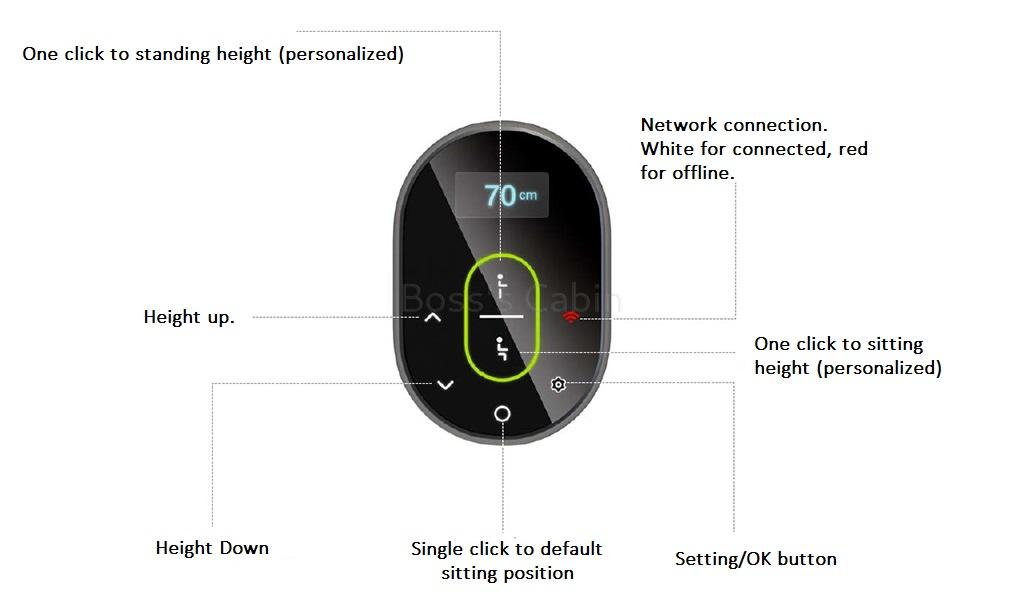 OLED Control Panel – The OLED touch screen has 360° visibility undistorted display. The capacitive touch screen is made of scratch proof glass with a response speed of less than 3 milliseconds. The sitting and standing positions can be personalized. It also has an adjustable default time of 45 minutes after which it reminds you to get into a standing position by a 5 second vibration of the desktop.