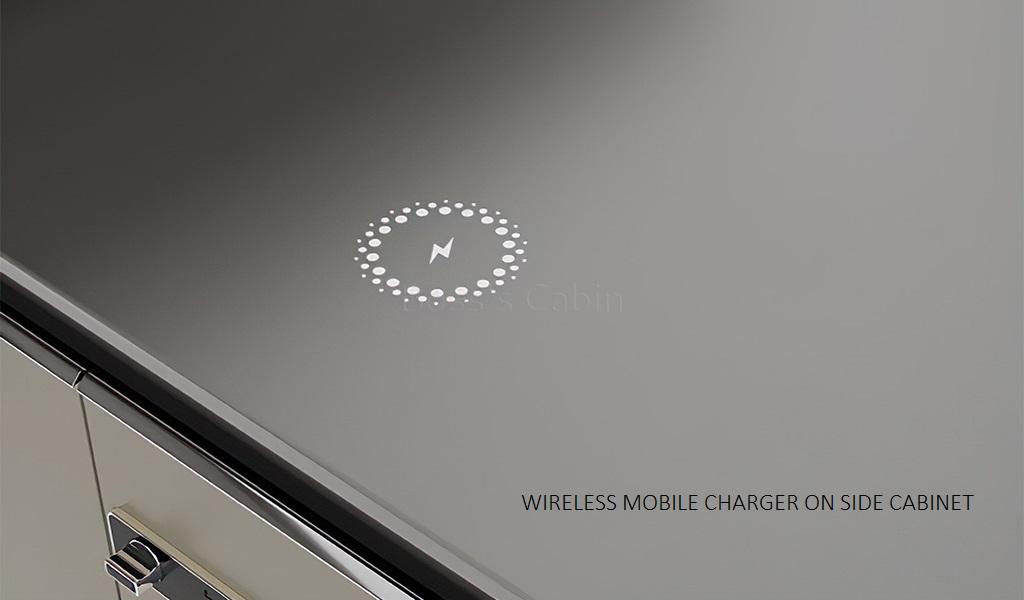 Integrated Concealed Wireless Charger – Reflecting our thoughtful design philosophy this is yet another convenience feature built into the design of the Varna. On the top of the side cabinet is a hidden wireless charger integrated on the top surface. When you place your wireless charging enabled mobile phone on the charging spot your phone automatically charges without needing any cable.