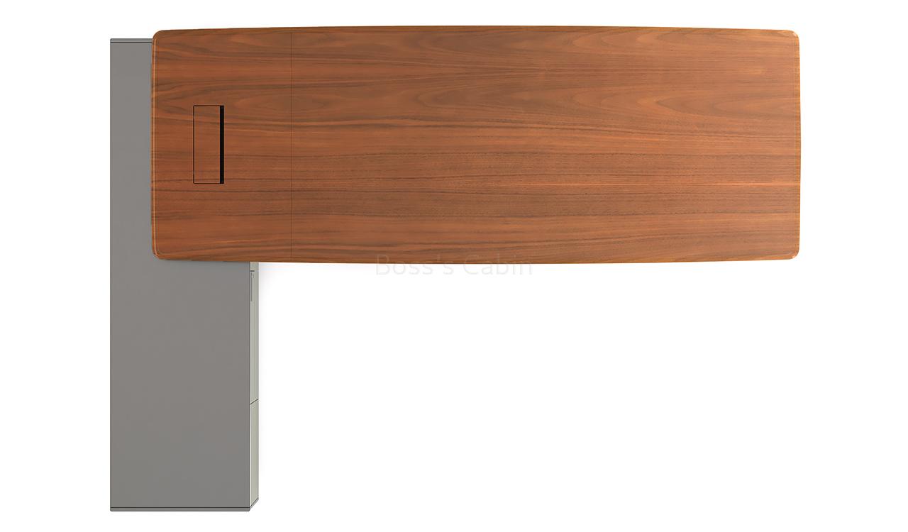 A Unique Combination of Multiple Surface Textures – Our objective of a luxurious finish is achieved by minute detailing and design elements that quietly enhance the richness of the desk. The Varna is designed using a combination of warm, open pore walnut veneer, mocha colored glossy lacquer and meteor gray smooth laminate. The multi textured surfaces are conceived to impart the desk a timeless elegance with vibrant modern looks.