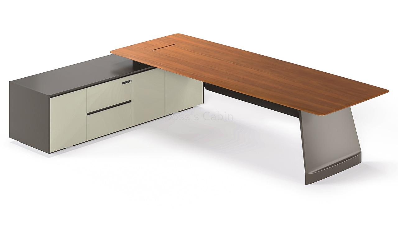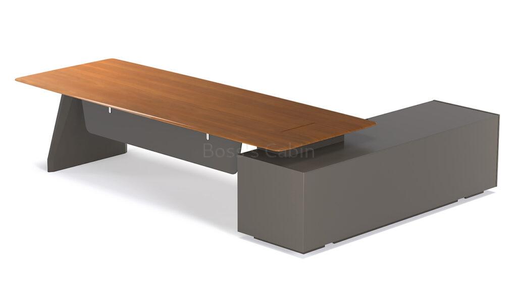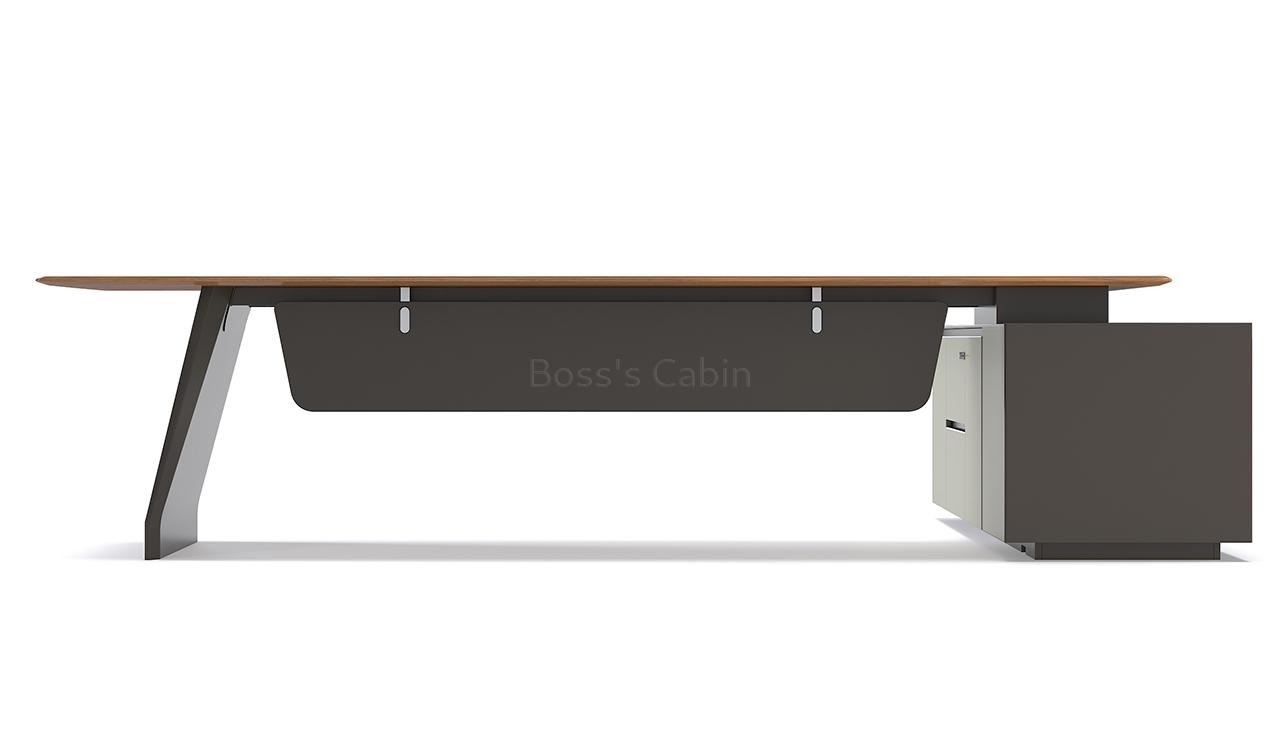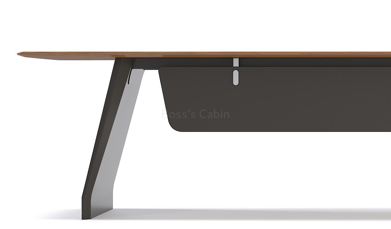 Art, Creativity & Integration – The diamond cut slanted base of the Varna is a specially created and cut monolithic panel involving multiple processes. Made by using an integrated molding process the whole panel is naturally formed without joints and splicing giving it strength and stability. Three dimensional cutting lines with multiple facets are created to match the muscular beauty of a ballerina’s feet enhancing the artistic look of the desk.