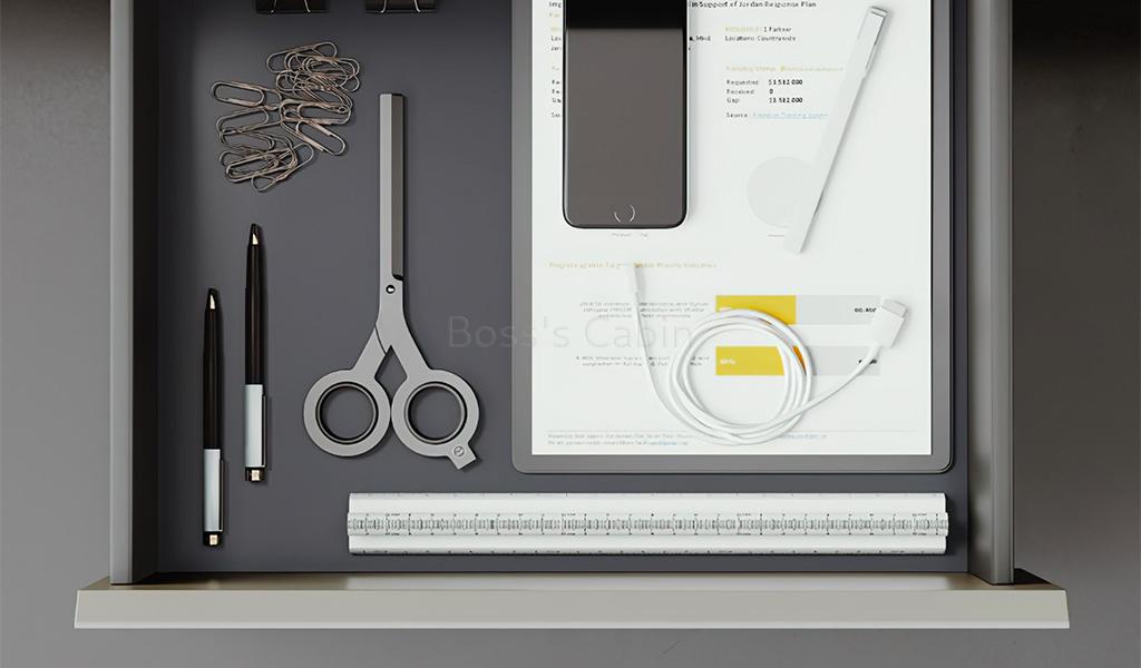 Smart Biometric Lock – The drawer of the side cabinet is equipped with smart, high protection finger print operated electronic lock to provide maximum security to your confidential documents as well convenience of use. The storage drawer itself is built with Hettich bottom rail for smooth operation and handling.