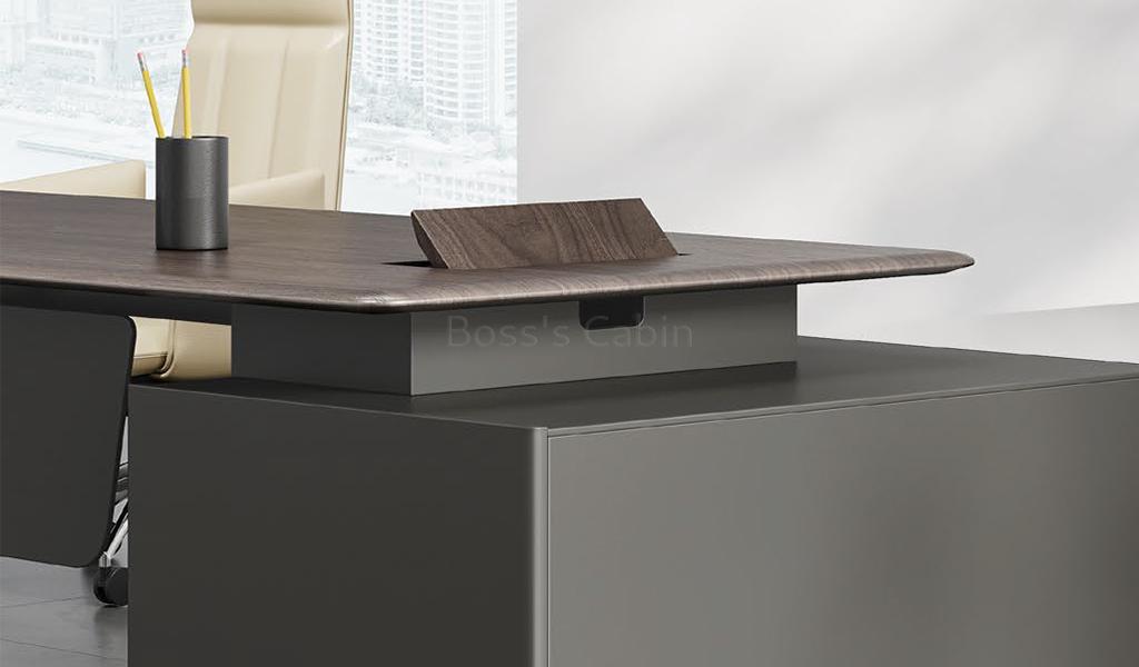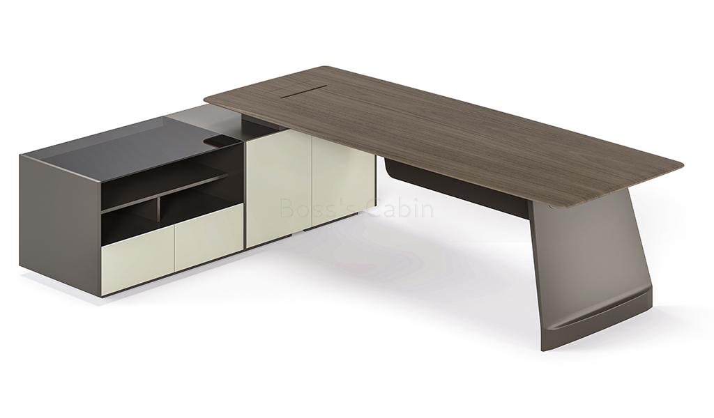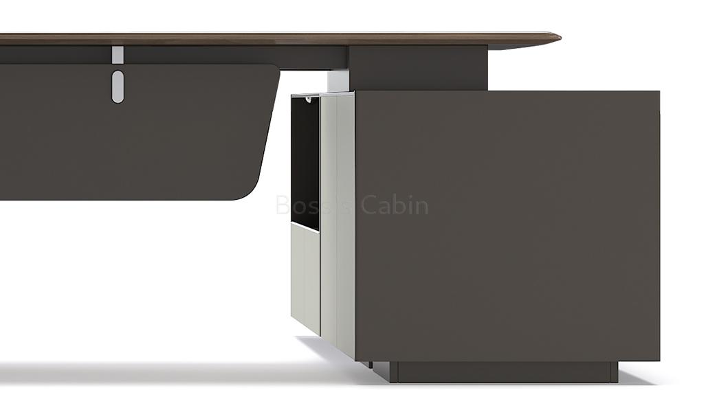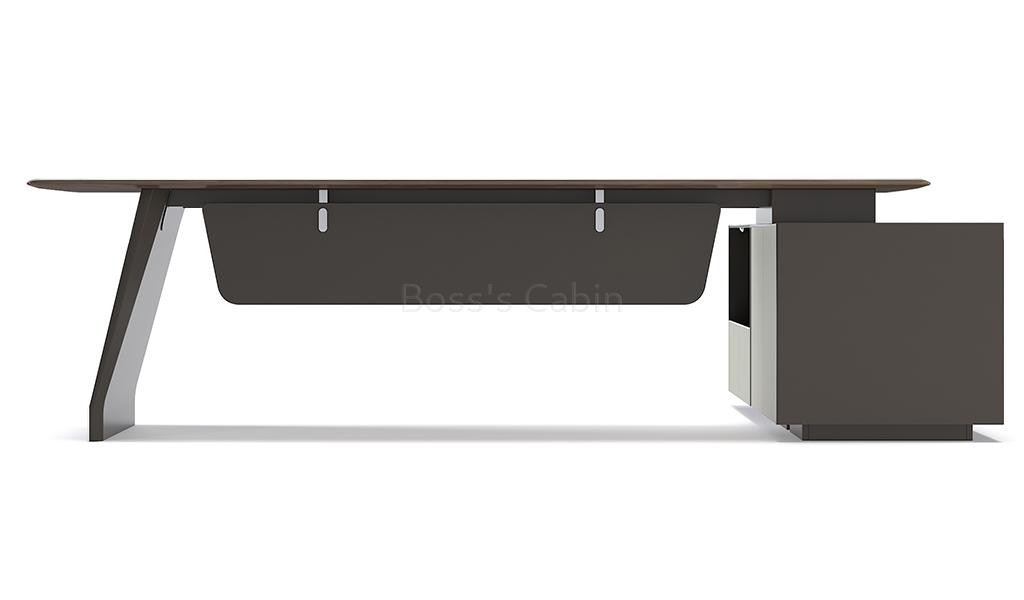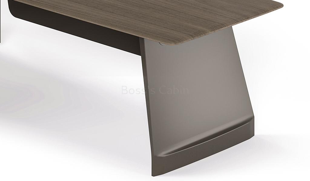 Art, Creativity & Integration – The diamond cut slanted base of the Varna is a specially created and cut monolithic panel involving multiple processes. Made by using an integrated molding process the whole panel is naturally formed without joints and splicing giving it strength and stability. Three dimensional cutting lines with multiple facets are created to match the muscular beauty of a ballerina’s feet enhancing the artistic look of the desk.