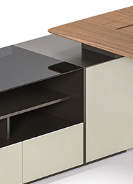 The subtle styling of the elegantly modern Varna 2nd generation series is inspired by the gracefully arched feet of a ballerina. The name Varna itself is taken from the famed city of Varna in Bulgaria, home to the International Ballet Competition. The series is an avant-garde combination of three types of surfaces – walnut veneer, meteor gray laminate and mocha colored lacquer – making it a uniquely stylish design series which is modern and elegant at the same time. Equipped with state of art wire management system it is designed to ensure optimum functionality. Needless to say the elegant Varna series personifies our design philosophy of Function, Form, Feel, Flair and Flamboyance…in that order.