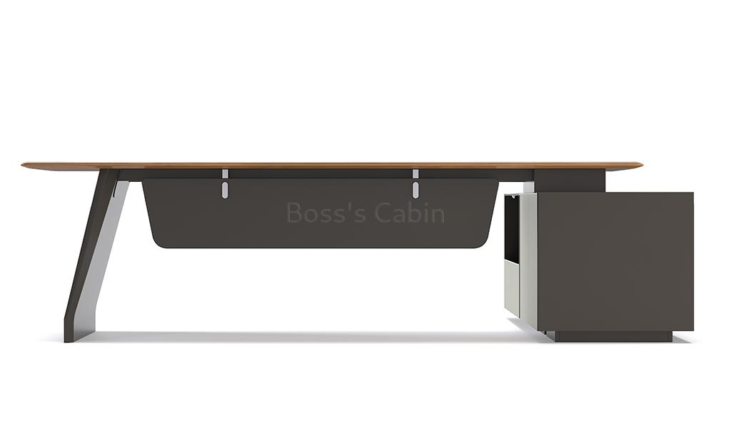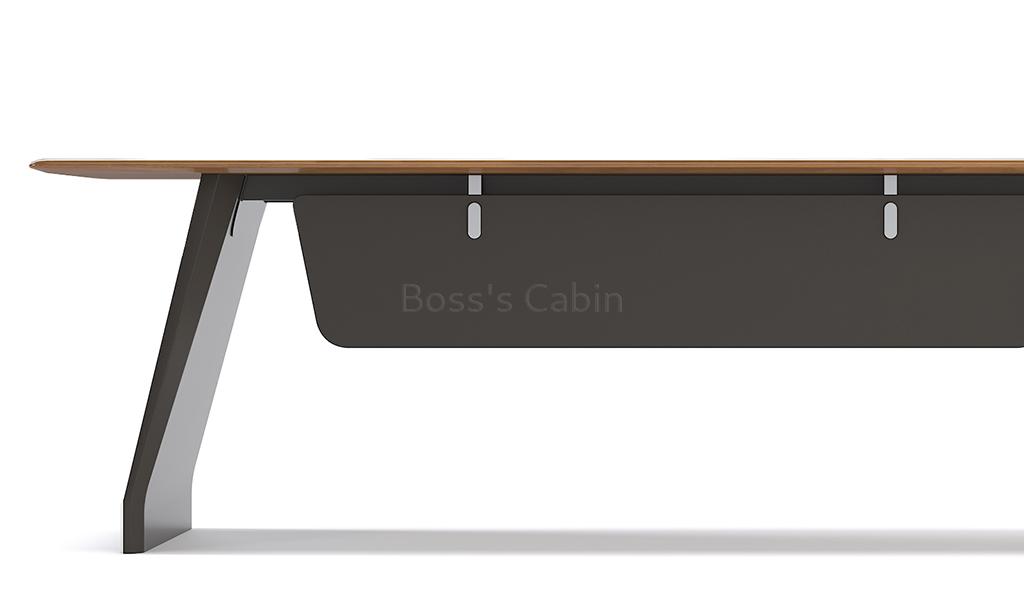 Art, Creativity & Integration – The diamond cut slanted base of the Varna is a specially created and cut monolithic panel involving multiple processes. Made by using an integrated molding process the whole panel is naturally formed without joints and splicing giving it strength and stability. Three dimensional cutting lines with multiple facets are created to match the muscular beauty of a ballerina’s feet enhancing the artistic look of the desk.
