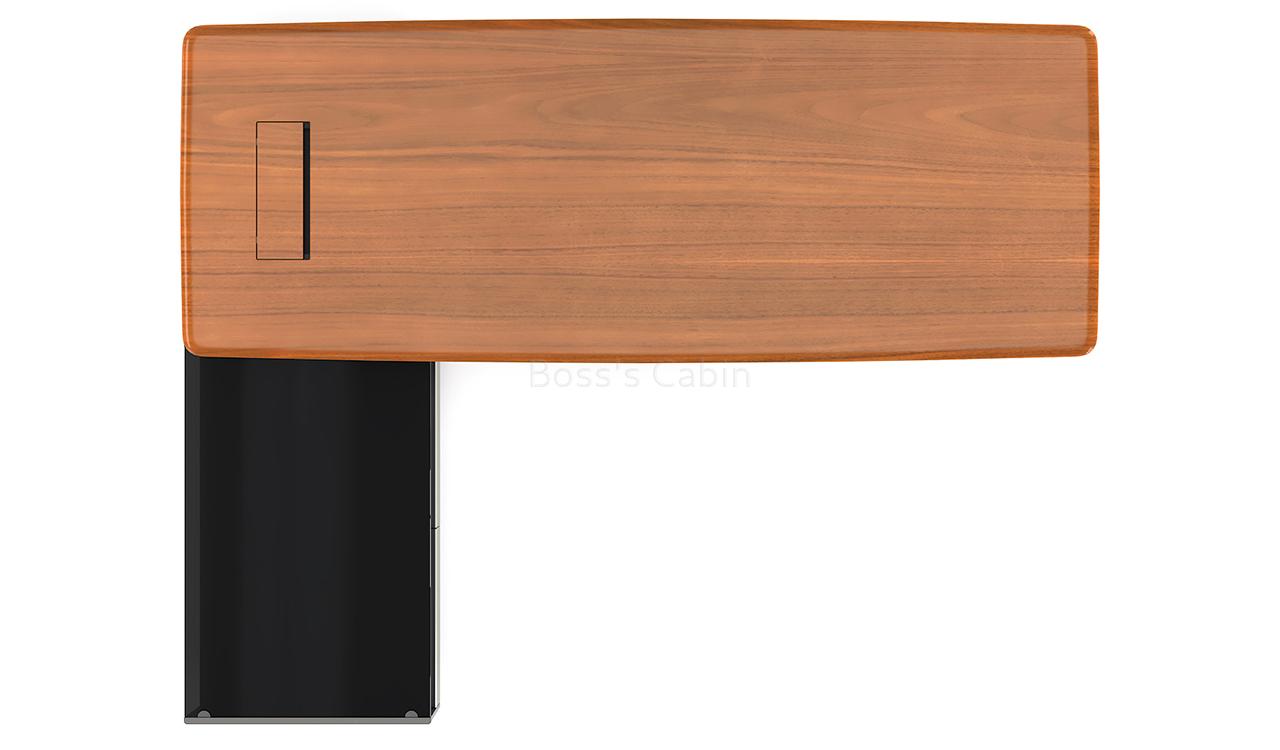 Inwardly Chamfered Desktop Edges– Unlike the usual right angled edges of a desktop the Varna has chamfered edges created with a 3D double sided absorption process. From the tabletop to the edges and even the underside the wood grain is continuous and without joints providing an impeccable surface finish. The curved corners of the table top along with the chamfering are a result of our eye for finer details that subtly enhance the richness of design aesthetics of Varna.