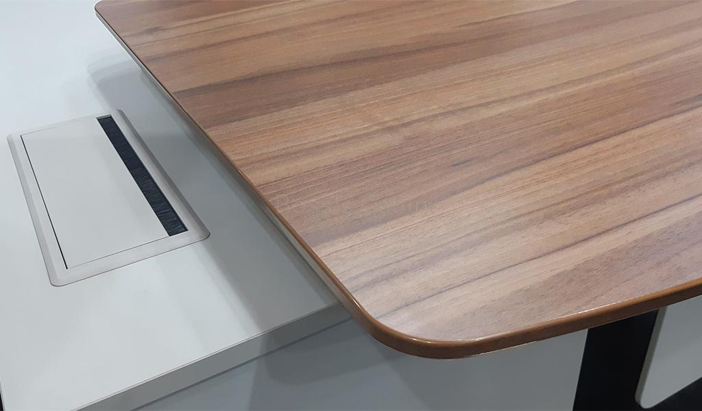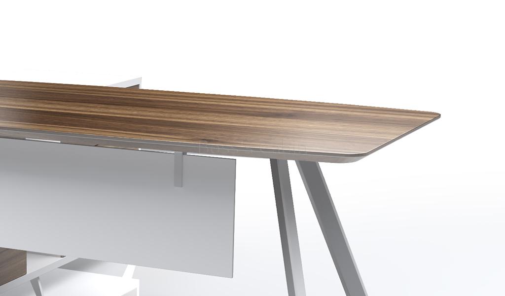 Made with environment grade engineered wood and natural wood laminate with tapered edges. The E1 rated MDF is a highly durable material and a world standard for premium office furniture while the walnut wood veneer is from our carefully selected range of premium natural wood veneers with consistent color and grain structure.