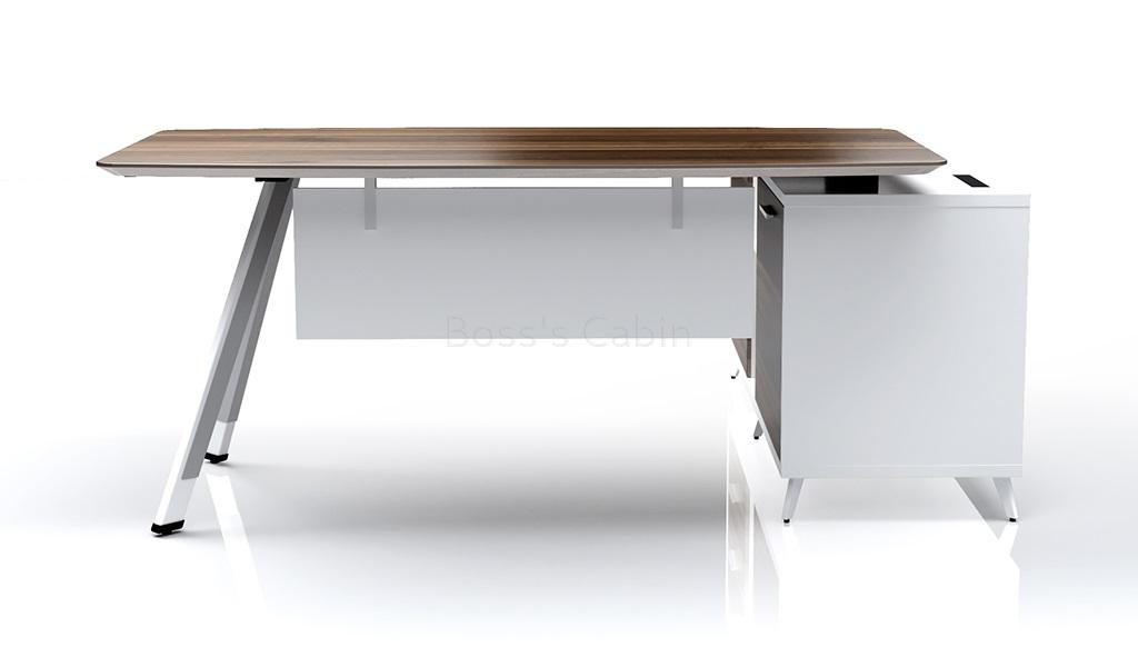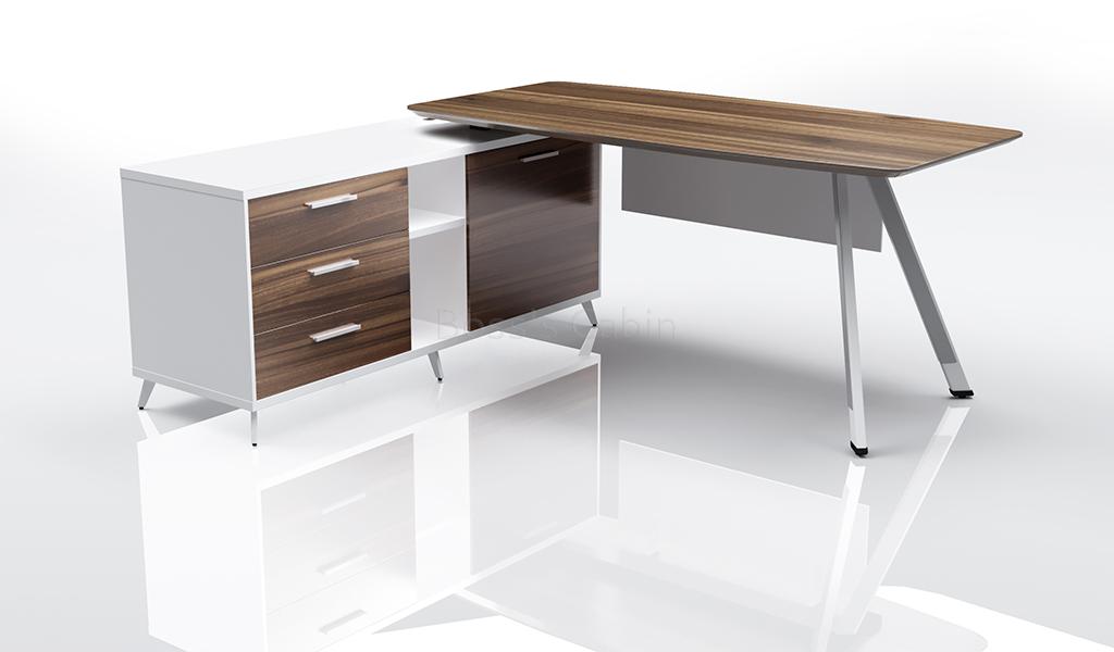 A sleek office table with side cabinet suitable for modern interiors.