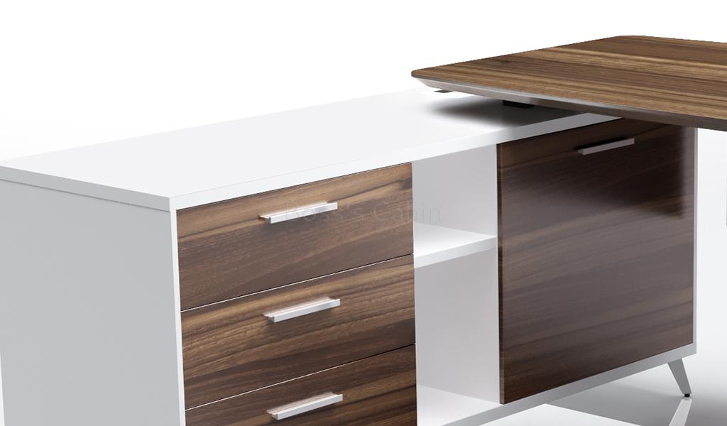 This contemporary executive desk with side cabinet looks best in its original walnut brown and white colors.