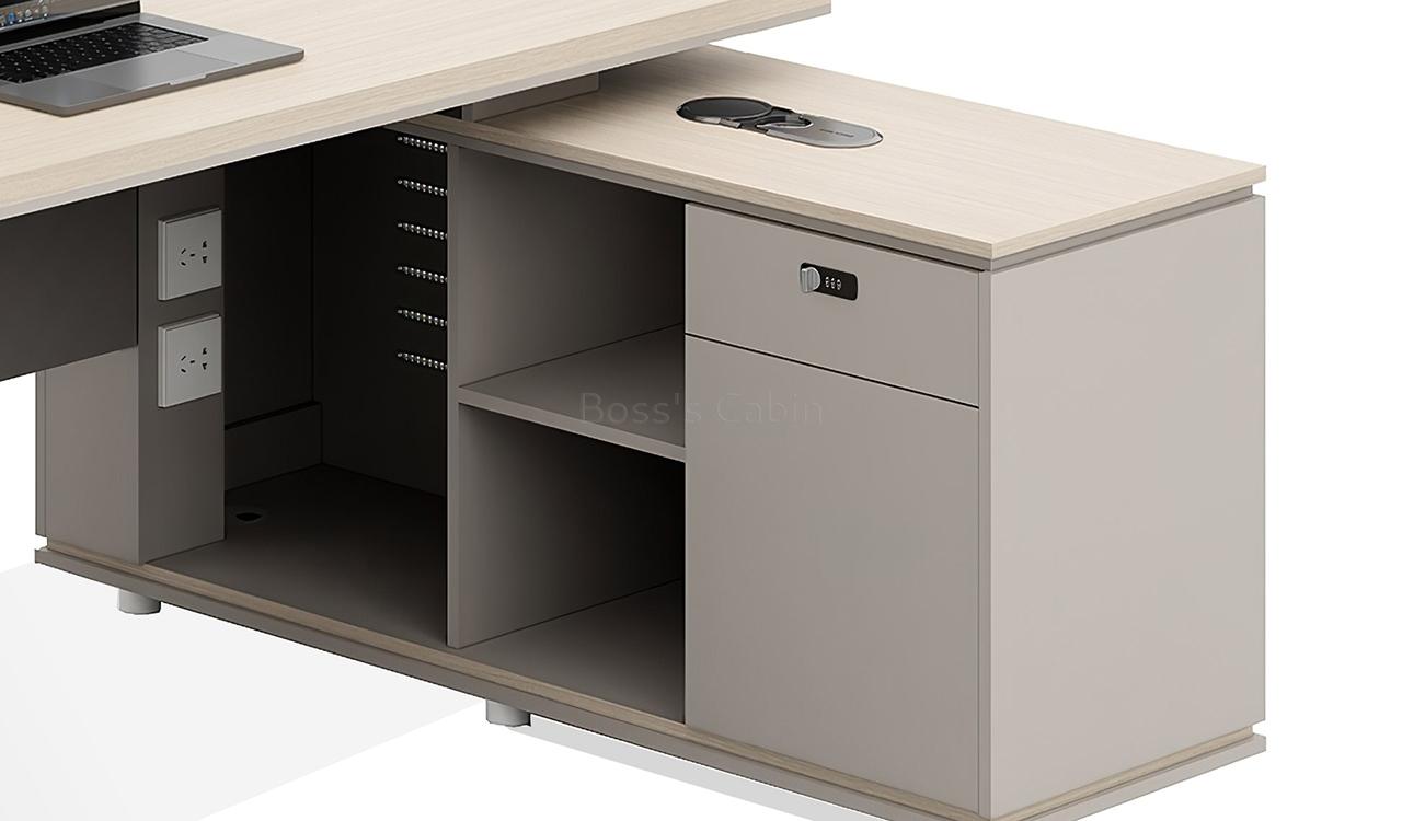 Part of the Lucira series this elegant 5 feet width office desk comes with side cabinet. It is best suited for large cabins of 100 sft and upward.