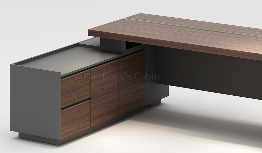 Part of the Nexa series this elegant 6.5 feet width office desk comes with side cabinet. It is best suited for large cabins of 100 sft and upward.