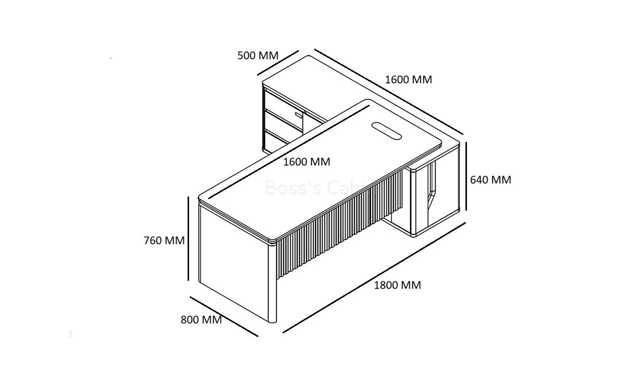 - 1800 W x 1600 D x 760 H MM