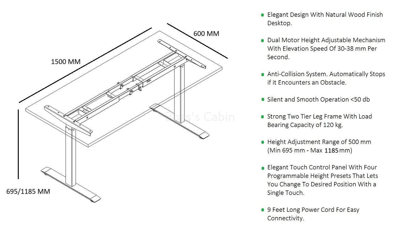 - 1500 W x 600 D x 695/1185 H MM