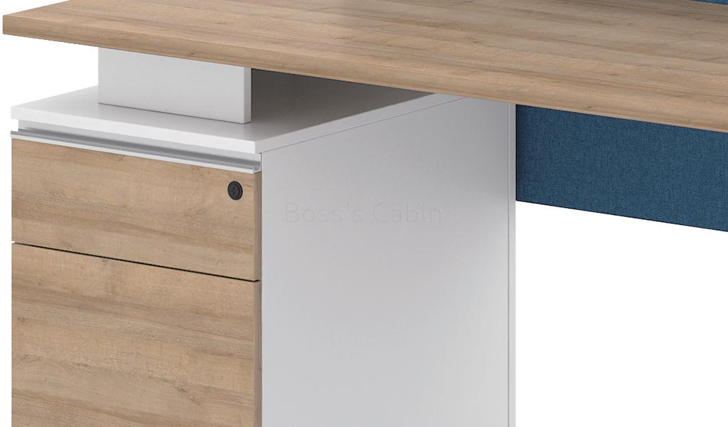 A simple yet strong structure of MDF finished with laminate and supported with aluminum alloy powder coated legs. An elegantly designed one seater linear workstation that is easy to install.