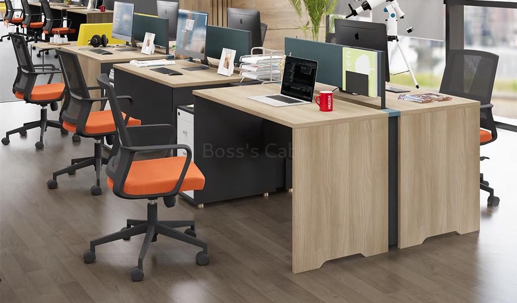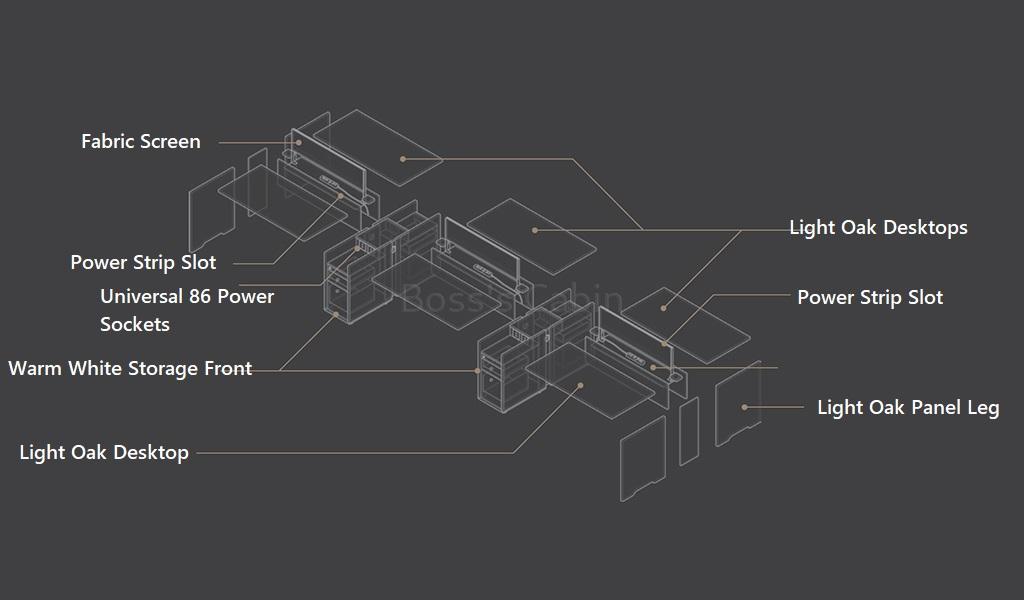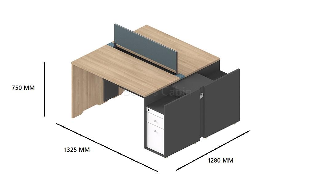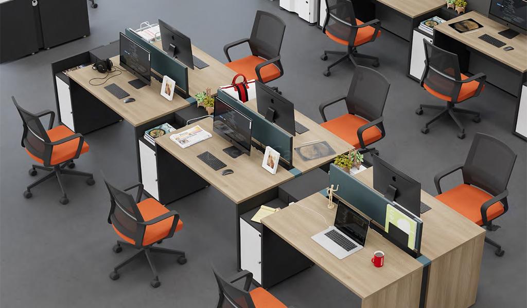 A smart, functional and easy to install linear workstation system smartly designed with a storage pedestal that doubles as a natural partition between two units. A two seater unit includes Akazie oak finish desktop, Cyan blue fabric screen, slim storage pedestal in tones of Carbon gray and warm white, inbuilt power sockets and concealed slot for keeping power strips. Put together multiple units and create various combinations to fit your workspace. Pairs perfectly with all Spiro series products.