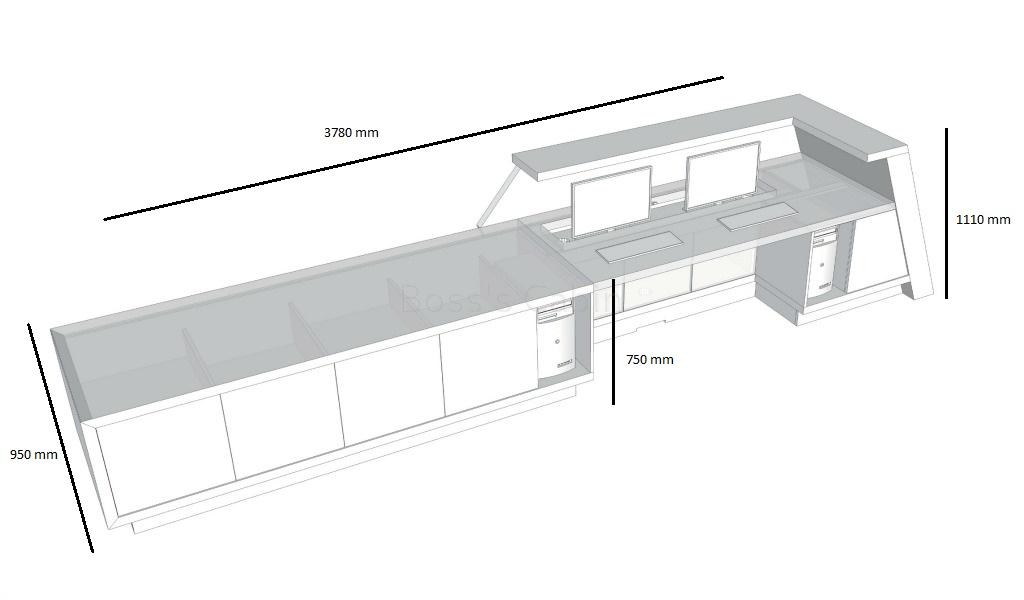 - 3780 W x 950 D x 1110 H mm