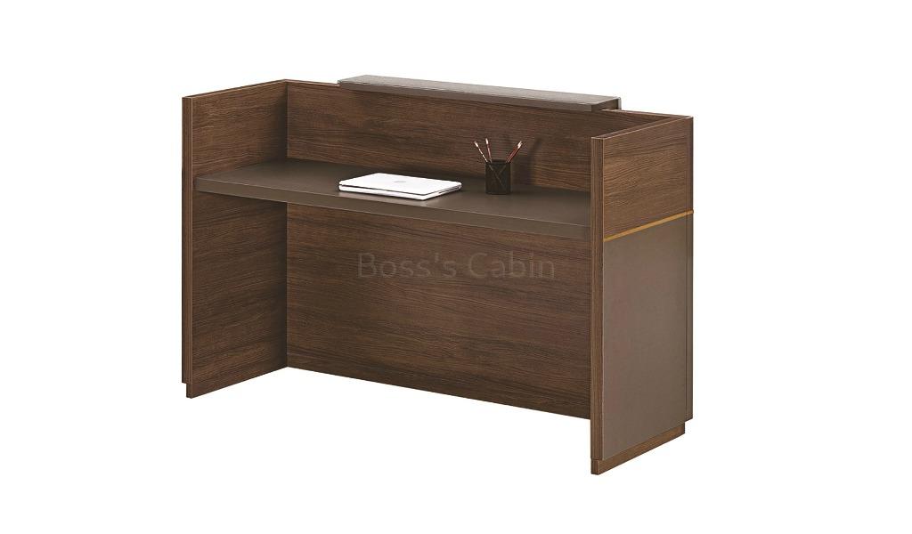 • ‘Miro’ 5 Feet Reception Desk In Norica Walnut Laminate Finish